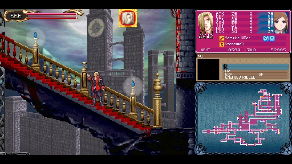 I do, however, remember liking the game itself quite a lot. Though the finer details escaped me when I booted it up again on Switch, I knew at least that I’d finished it many times as a kid, and some of the unforgettable broad strokes never left me. The tag-team protagonists Charlotte and Jonathan, of course, the extremely cool unlockable Old Axe Armor mode, and something about a pair of vampire baddies in the villain cast. I must say, I’d forgotten a great deal about this game despite this one being the one I probably played the most of the three DS titles, but it’s all come back to me now, and I’m glad. Portrait has comfortably landed at the top of my DS Castlevania tier list in the end.