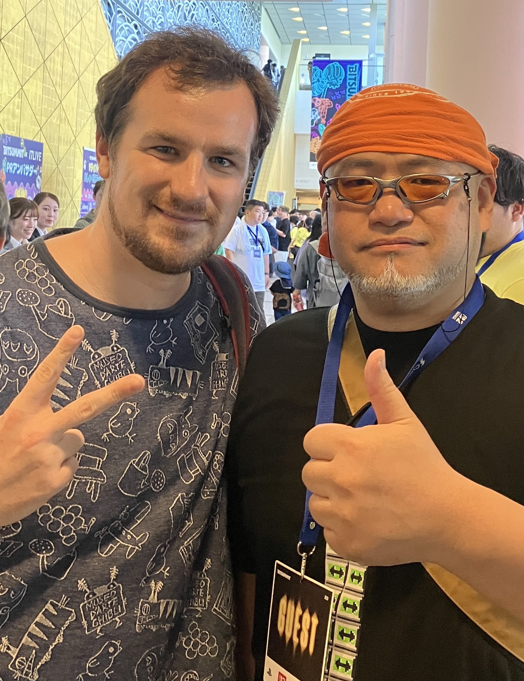 2025 marks my third BitSummit, and it was a good one! After living in Japan for nearly three years, this time I was running into so many people that I knew randomly around the event. At first when I get to these events, I tend to feel a huge wave of impostor syndrome. This one was no different, but thankfully with friends and peers around, I was able to get out of it and enjoy the show. Sadly, I neglected to take many pictures of the venue, so you’ll just have to enjoy this image of me with Hideki Kamiya. I ran into him randomly at the beginning of the first day, and if he hadn’t been on his way to a thing, I would have loved to have had a chance to talk to him more. Alas! Also, I lost over 10kg recently! Flatter me, please!