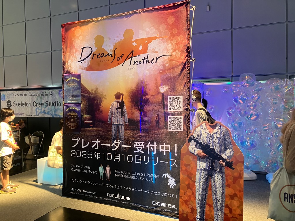 The game thankfully felt pretty solid to play, and as I’m sure you’ve noticed in the screenshots, it looks hella’ good. Staff on hand explained to me that the game uses a point cloud system to assemble the environment as you shoot it, and I really have to give it to ‘em on the specific artistic execution of the idea. Despite the game obviously being a very modern game, I felt like there was almost a low-fidelity retro look to the world once you’ve shot it and the particles have assembled. This made for a spectacular contrast with the particles in their disassembled state, when they bear a dreamy bubble-like appearance. This particular aspect is really the whole backbone of the game’s aesthetic, and I truly feel they nailed it. As a final note, I played the game on a TV, but there is a VR mode available for PSVR2 (as far as I can tell, the VR mode is currently console exclusive despite the game also launching on Steam). A big VR fan/acquaintance of mine told me at the show that he actually preferred the flat version to the VR version, but take it as hearsay for now. I’m keen to take it for a spin myself when the game launches.