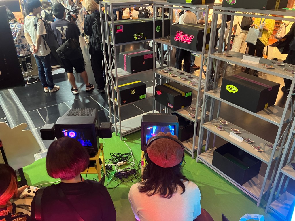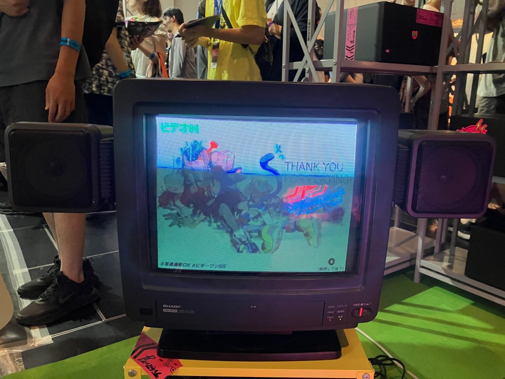 Before we get to that, I have a critique for the publisher; the booth! It was cute, but quite frankly annoying. If you have enough money to buy a standalone booth space at an event, please have more than two setups on hand for your 10+ minute demo! The small crowd snaked around the edges of the booth, and the one staffer on site did not have a strong grasp of how to coordinate a crowd. One cute element was that the booth opted to have the game presented on CRTs, which looked excellent, but as my assigned TV had speakers built in, I suppose they decided that I didn’t get a pair of headphones like my neighbor. Hearing the game’s music was challenging in such a noisy environment, so that was a shame. I’ll leave some booth shots at the bottom of this section so you can have a look.